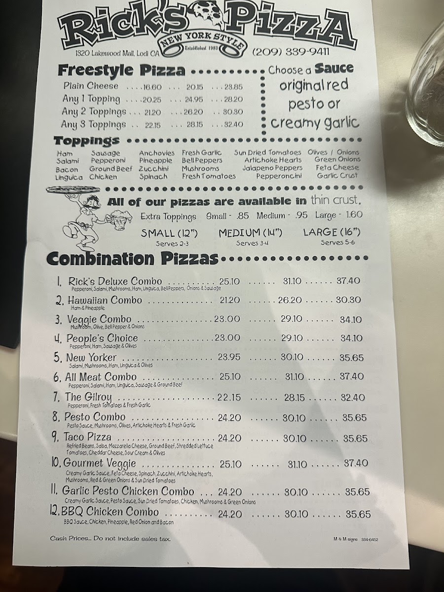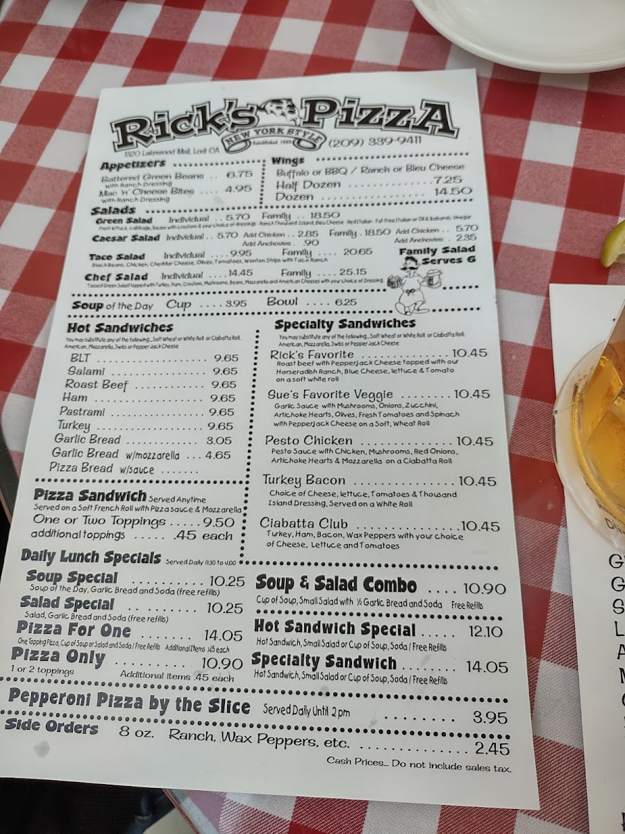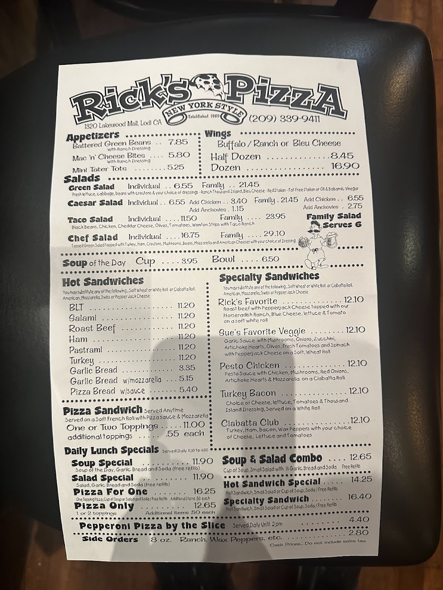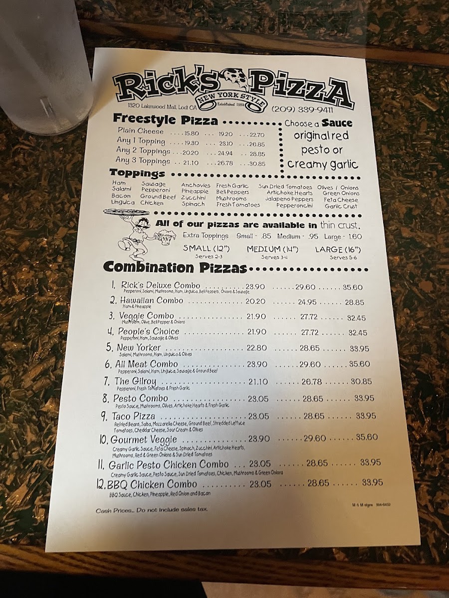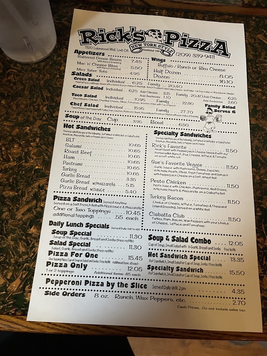 When you're craving a slice of authentic, New York-style pizza, look no further than Rick's New York Style Pizza. Located at 1320 Lakewood Mall, Lodi, CA, this spot offers a menu that brings the flavors of the Big Apple right to your table. From the moment you step in, you'll notice the focus on fresh ingredients, expertly prepared dough, and that perfect, crispy crust. Each pizza is crafted to satisfy any taste - whether you're into classic cheese, a loaded meat feast, or something a little more adventurous with unique toppings.
